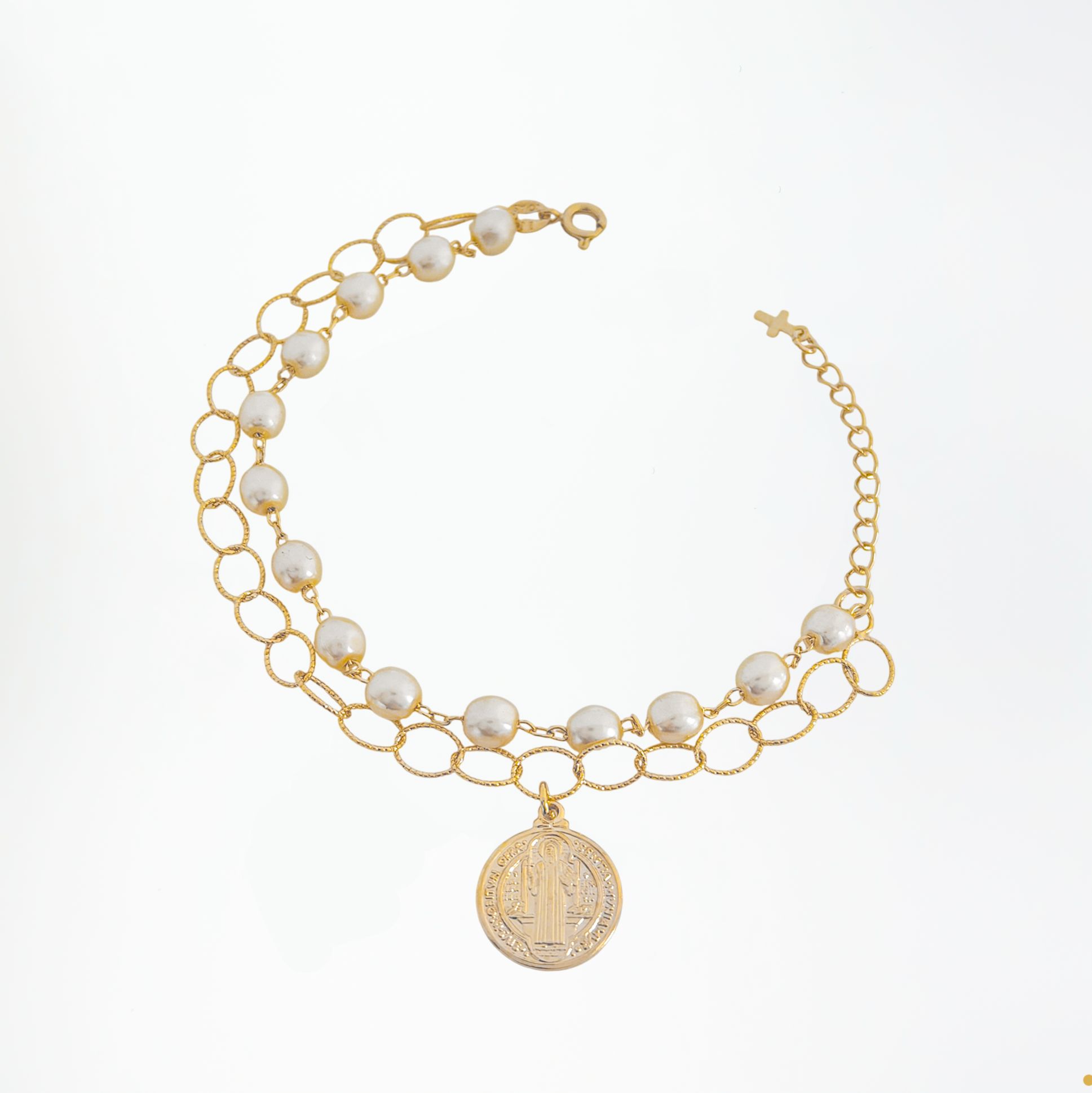 Pulseira Malha dupla São Bento com Pérolas